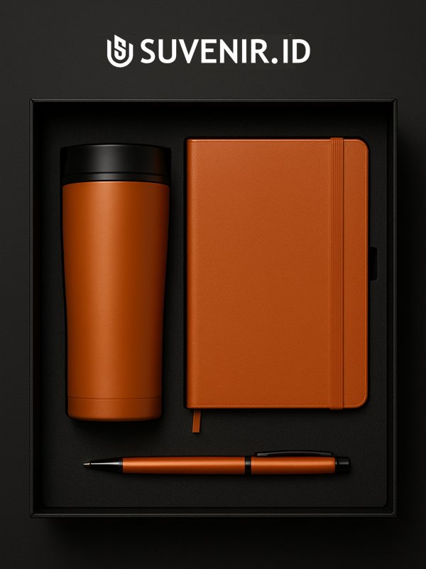 Buat kesan tak terlupakan dengan paket gift set souvenir elegan dari Suvenir.id. Dirancang khusus untuk memenuhi kebutuhan acara perusahaan, hadiah klien, seminar, maupun momen spesial lainnya, gift set ini terdiri dari item premium seperti tumbler, notebook, pulpen, totebag, payung lipat, dan jam tangan. Kombinasi warna oranye dan hitam memberikan kesan profesional, berkelas, dan penuh energi, menjadikannya pilihan tepat untuk memperkuat citra brand Anda.