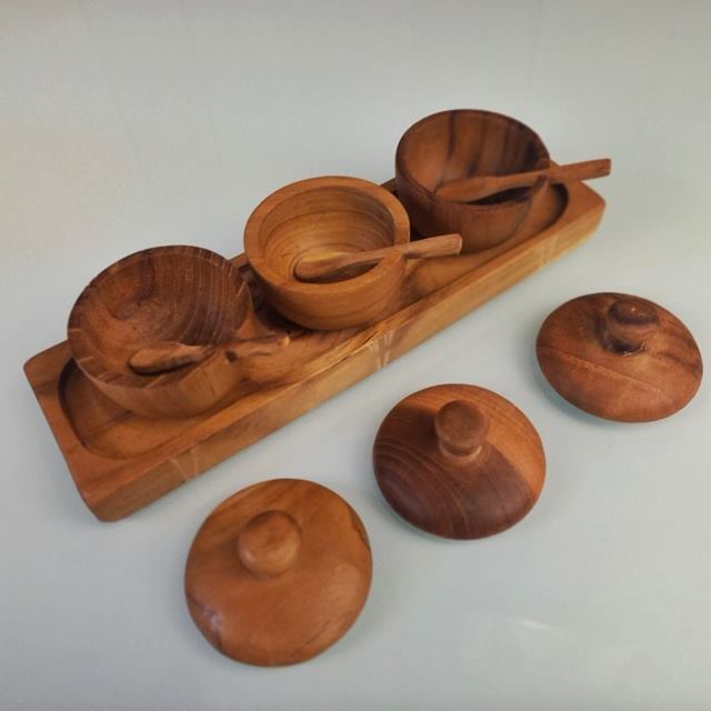Tempat bumbu dari kayu memberikan kesan hangat, natural, dan elegan. Kayu yang digunakan biasanya berasal dari jenis yang tahan lama seperti kayu jati, mahoni, atau pinus. Cocok untuk konsep rustic, vintage, atau eco-friendly. Selain itu, kayu juga mudah diukir atau dibakar dengan desain personal.Kaca