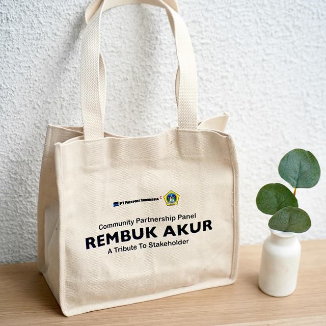 Untuk Anda yang menginginkan tote bag suvenir dengan tampilan unik dan modern, bahan seperti denim atau canvas twill juga bisa menjadi pilihan. Kedua bahan ini memberikan kesan kasual namun tetap kokoh, sangat cocok untuk acara fashion, komunitas kreatif, atau gift eksklusif.